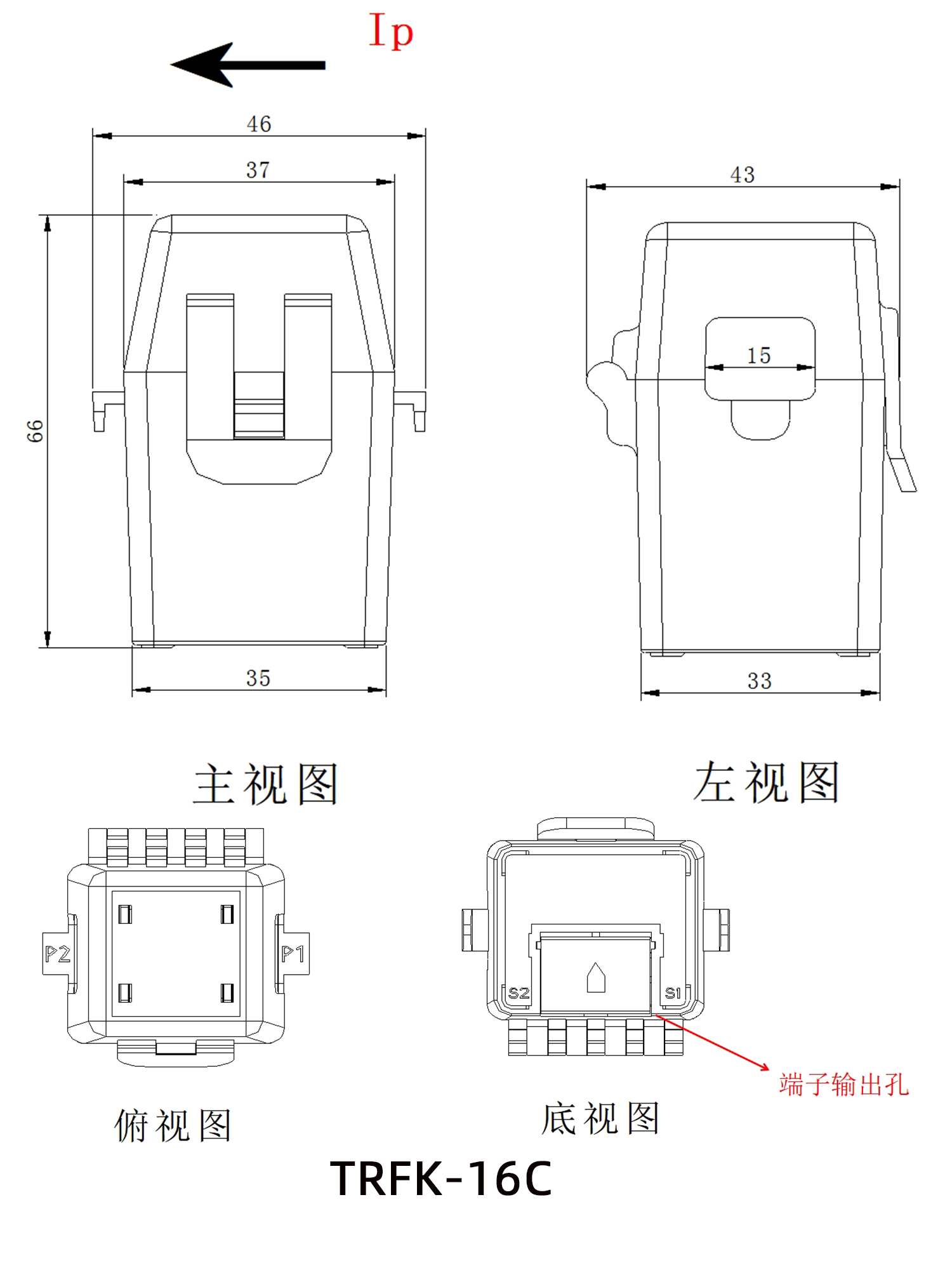 TRFK-16C 1A~100A 0.5mA~100mA 15 46 43 66