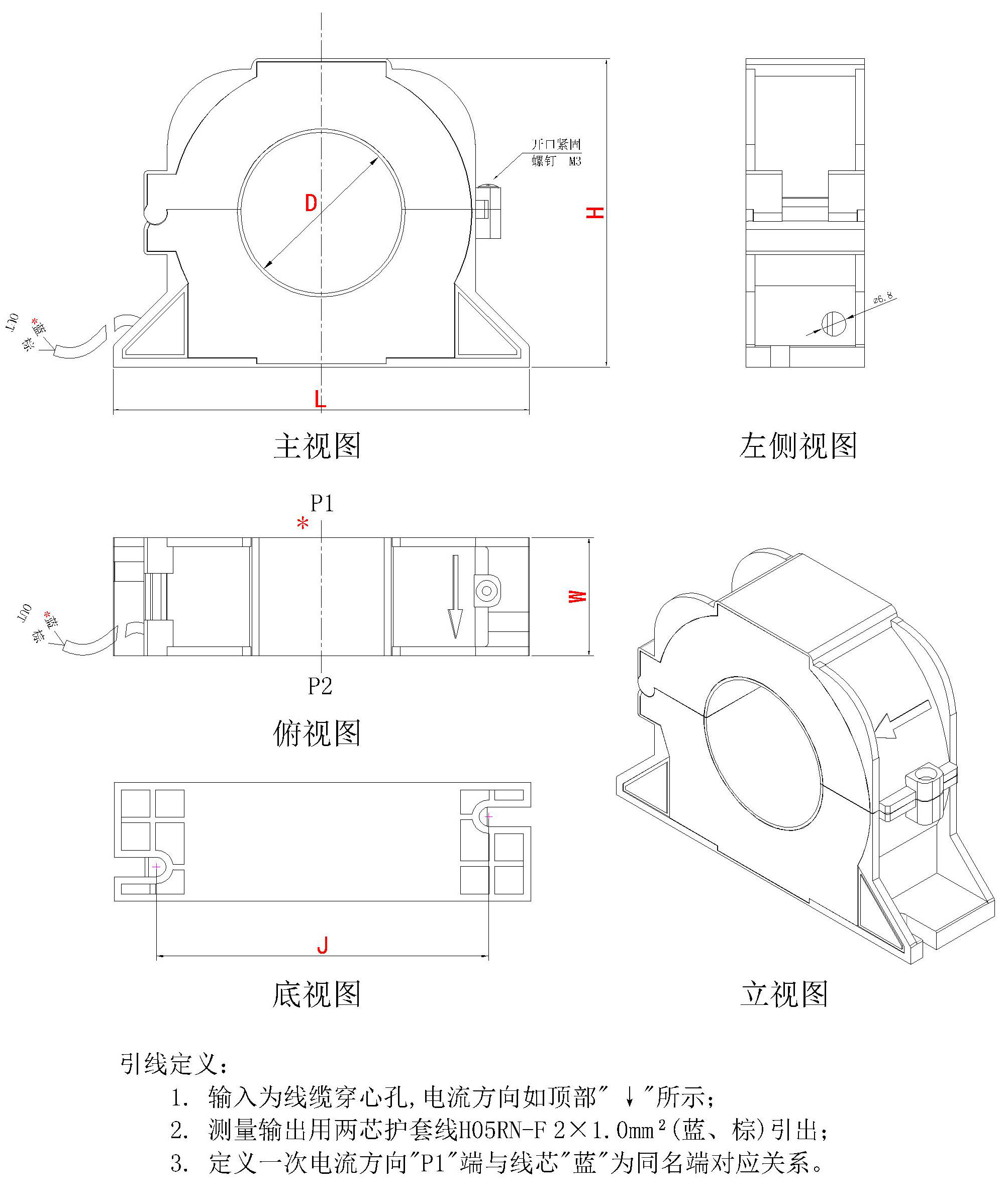 外壳及骨架 PBT/PC阻燃等级94-V0 输出方式 护套线