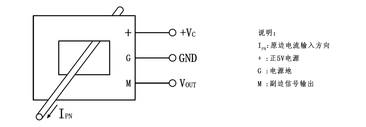 该传感器采用磁平衡霍尔电压检测原理工作。原边电流产生的磁通量与霍尔电压经过放大产生的副边电压,通过副边线圈所产生的磁通量相平衡,副边电压便能精确地反应原边电流。